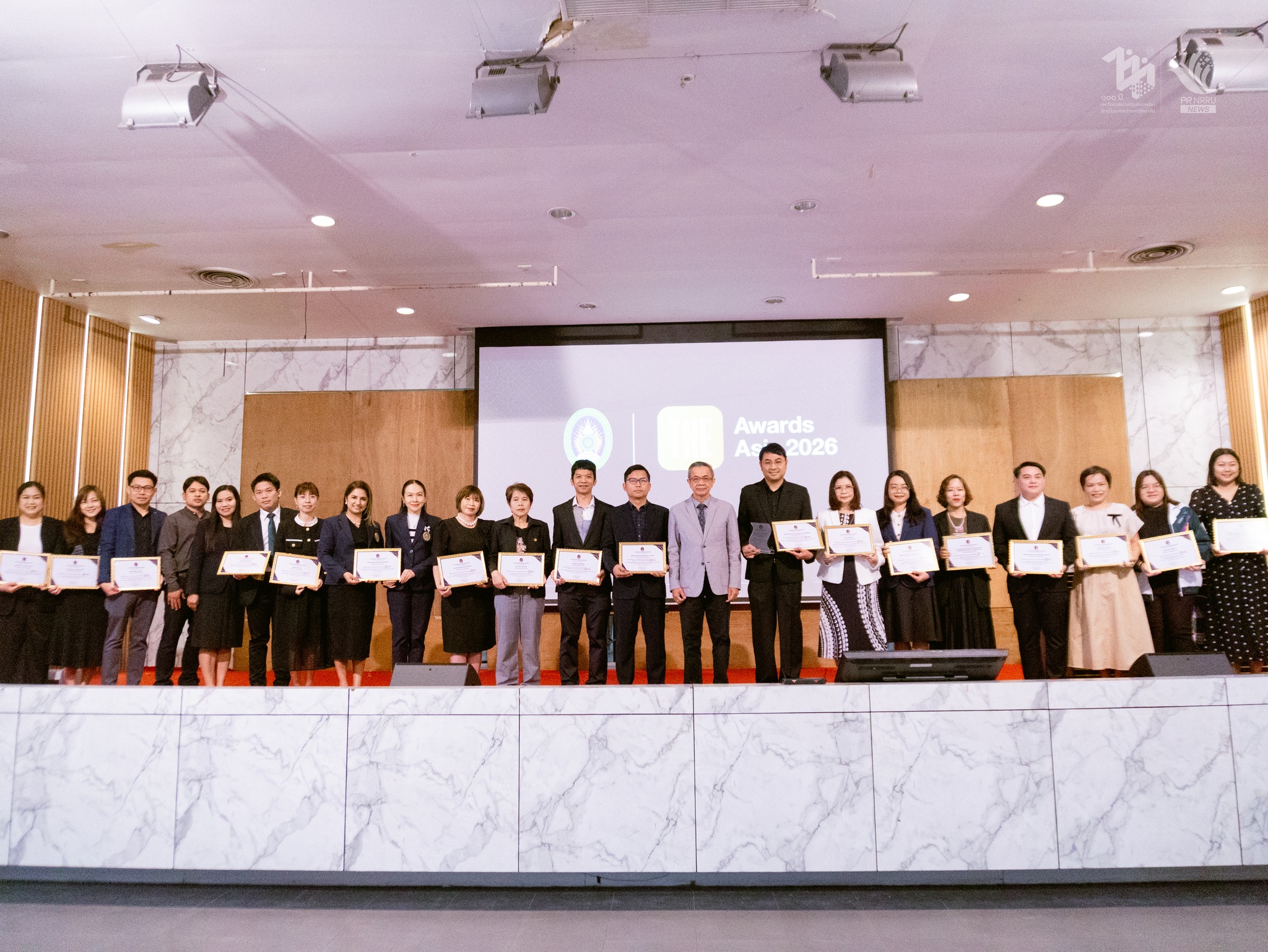 วันนี้ ( 3 กุมภาพันธ์ 2569) มหาวิทยาลัยราชภัฏนครราชสีมา จัดการประชุมบุคลากรมหาวิทยาลัยราชภัฏนครราชสีมา ประจำปีงบประมาณ พ.ศ.2569 ณ หอประชุมอนุสรณ์ 70 ปี โดยมี รองศาสตราจารย์ ดร.อดิศร เนาวนนท์ อธิการบดี เป็นประธานในการประชุม ในการนี้มีการมอบโล่ให้บุคลากรที่ได้รับคัดเลือกเป็น 1 ใน 8 สถาบันการศึกษา ระดับเอเชียให้เข้าชิงรางวัล THE Awards Asia 2026 ประเภทผลงานที่โดดเด่นด้าน Research Project of the Year: Arts, Humanities and Social Sciencesผลงานเรื่อง Korat Learning City : From a Global Geopark to a City of Learning, Arts, and Creative Economy Based on Innovation and Technology โดย ผู้ช่วยศาสตราจารย์ ดร.วรฤทธิ์ กอปรสิริพัฒน์, ผู้ช่วยศาสตราจารย์เกรียงไกร ดวงขจร, ผู้ช่วยศาสตราจารย์ ดร.ดุริวัฒน์ ตาไธสง และ ดร.ฉัฐระพี โพธิ์ปิติกุล จากนั้นเป็นการมอบโล่เพ็ชรราชภัฏนครราชสีมา ให้กับ ผู้ช่วยศาสตราจารย์ ดร.ณัฏฐินี ทองดี , ผู้ช่วยศาสตราจารย์ภณิดา แก้วกูร , ผู้ช่วยศาสตราจารย์ ดร.วาสนา ภานุรักษ์ และ ผู้ช่วยศาสตราจารย์เรขา อินทรกำแหง ต่อด้วยการประชุมบุคลากรมหาวิทยาลัยราชภัฏนครราชสีมา แนวทางการบริหารงานของมหาวิทยาลัย โดย รองศาสตราจารย์ ดร. อดิศร เนาวนนท์ อธิการบดีมหาวิทยาลัยราชภัฏนครราชสีมา การนำเสนอแนวทางการบริหารมหาวิทยาลัยของรองอธิการบดี ปิดท้ายด้วยการถามตอบคำถามจากอาจารย์ บุคลากร เพื่อร่วมกันระดมความคิดในการพัฒนามหาวิทยาลัยต่อไปในอนาคต